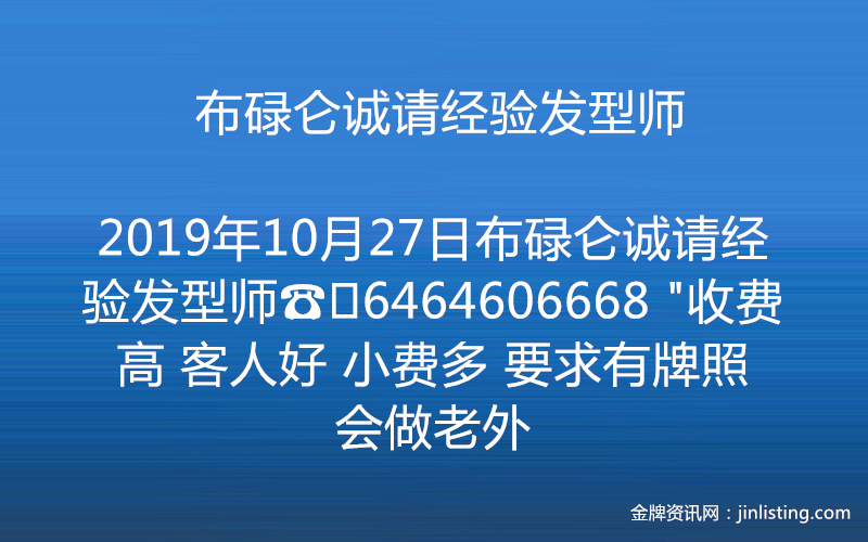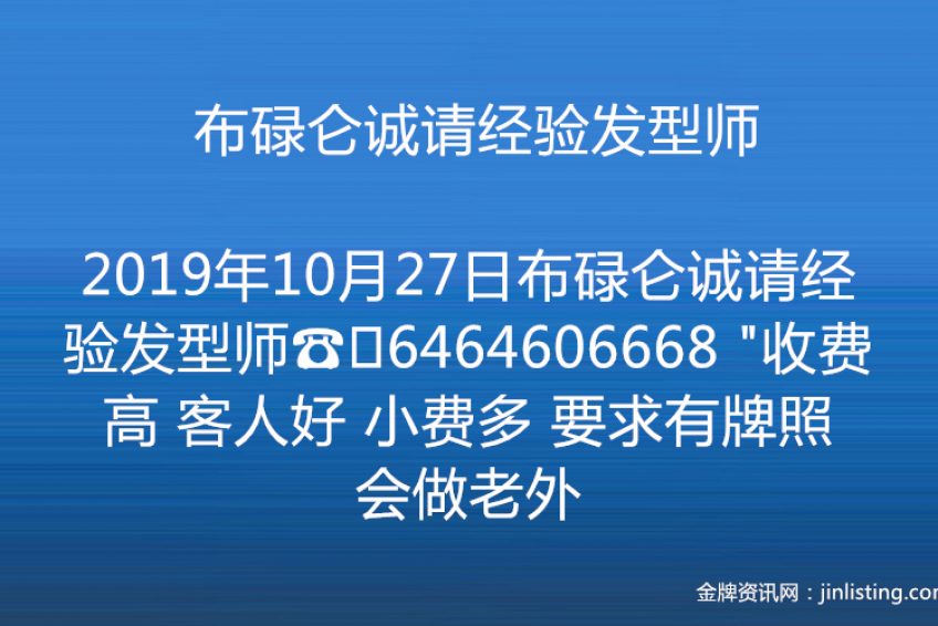 布碌仑诚请经验发型师☎️6464606668 “收费高 客人好 小费多 要求有牌照 会做老外