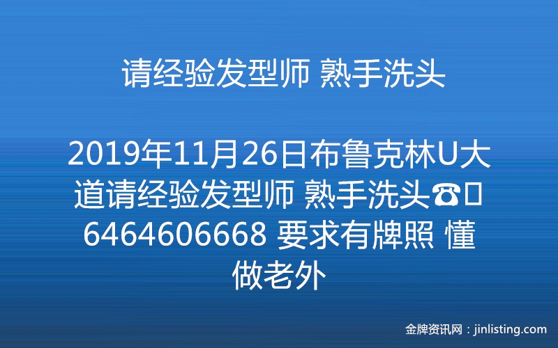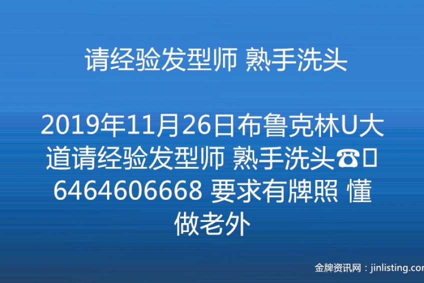 布鲁克林U大道请经验发型师 熟手洗头☎️6464606668 要求有牌照 懂做老外