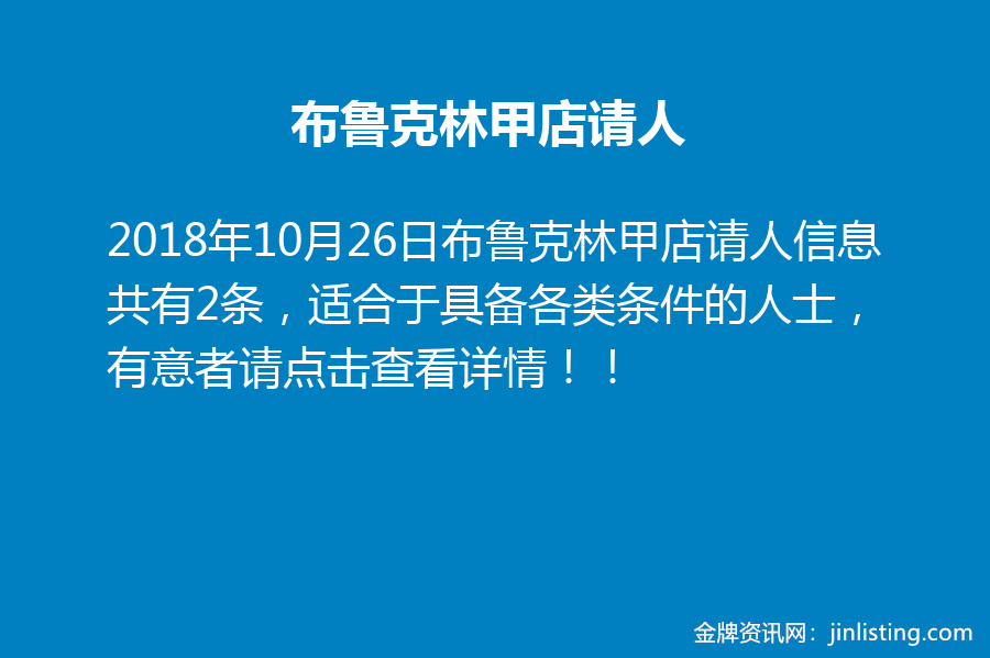 布鲁克林甲店,诚请经验大工,底薪加分账。八大道接送,早下班。工作环境轻松,社区安全有保安。有意者请电6465206122