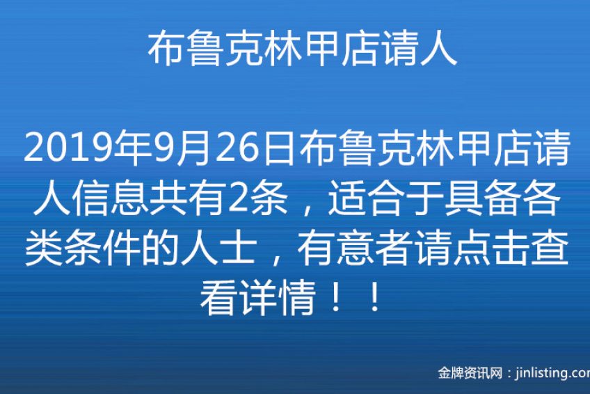 甲店诚请 Brooklyn 威联斯堡好区诚请大工,小工各一名小费好请电9176695293或留言