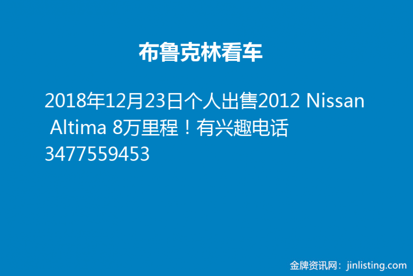 个人出售2012 Nissan Altima 8万里程!有兴趣电话3477559453