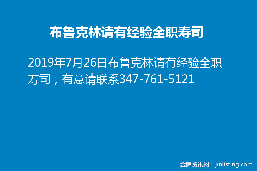 布鲁克林请有经验全职寿司,有意请联系347-761-5121