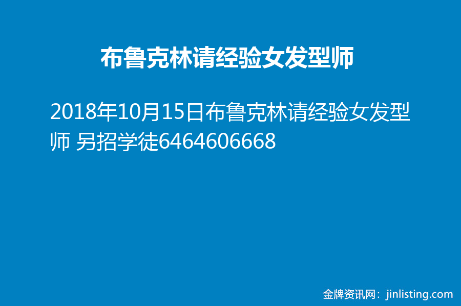 布鲁克林请经验女发型师 另招学徒☎️6464606668