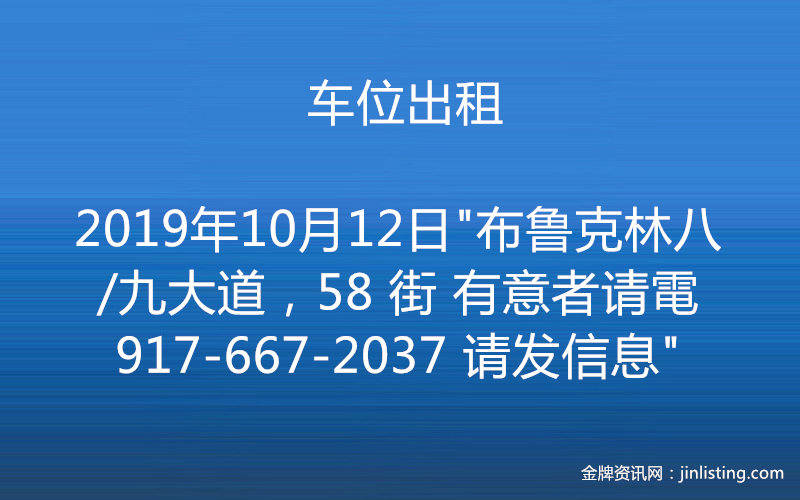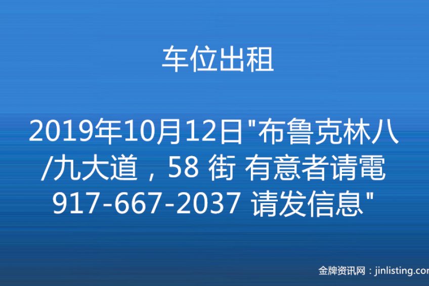 “车位出租 布鲁克林八/九大道,58 街 有意者请電917-667-2037 请发信息”