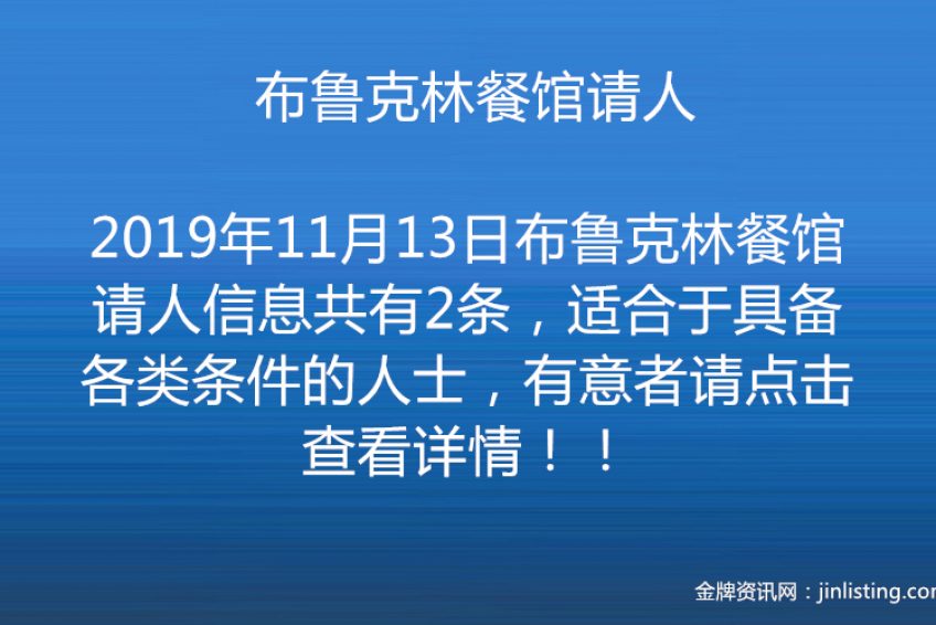 【招工】前台女工一位,后厨打杂一位,位于布鲁克林飞龙超市美食城 8大道64街 电话:9175351986