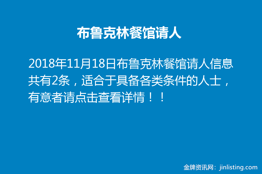 餐馆请人 “招工: 布鲁克林近地铁站新派餐馆招厨房工人,工作时间一周六天。月薪3000左右。并招收英文流利,有经验有责任心的收银员(工作时间和工资电聊) 联系电话:6465918886 联系人 Helen”