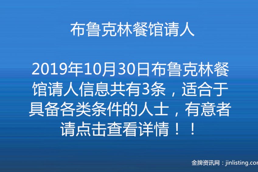连锁餐饮中央厨房请厨房打杂师傅,薪优环境好 “Job Descriptions: 精致快餐厅中央厨房请厨房打杂师傅 会英语者优先录用! 工作时间 9:15am-7:00pm,一周5-6天 工作地点 253 36th Street, Brooklyn 需要报全税 Benefits and Others 升职加薪机会 年终奖金 免费工作餐 How to Apply: Please CALL 917-755-8063 (Mon-Fri 10:30am-6:00pm EST) if you are interested”