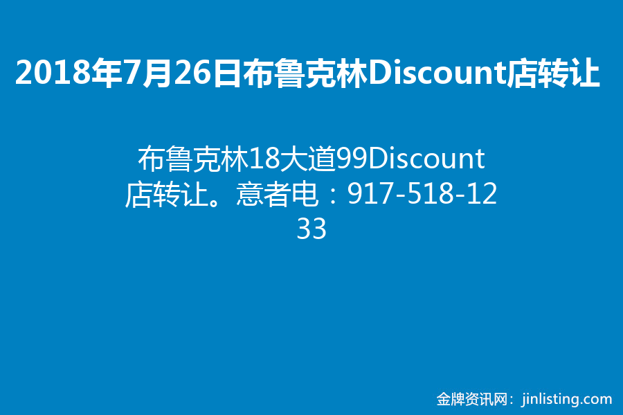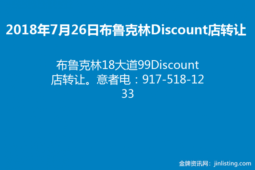 布鲁克林18大道99Discount店转让。意者电:917-518-1233