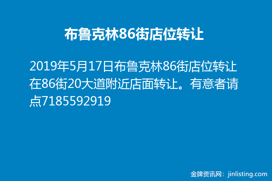 布鲁克林86街店位转让 在86街20大道附近店面转让。有意者请点7185592919
