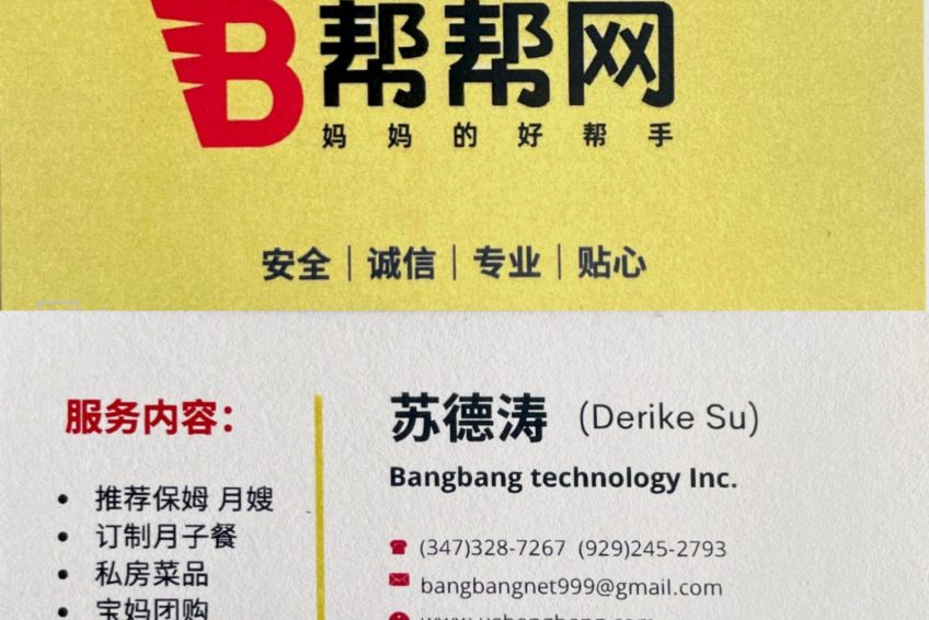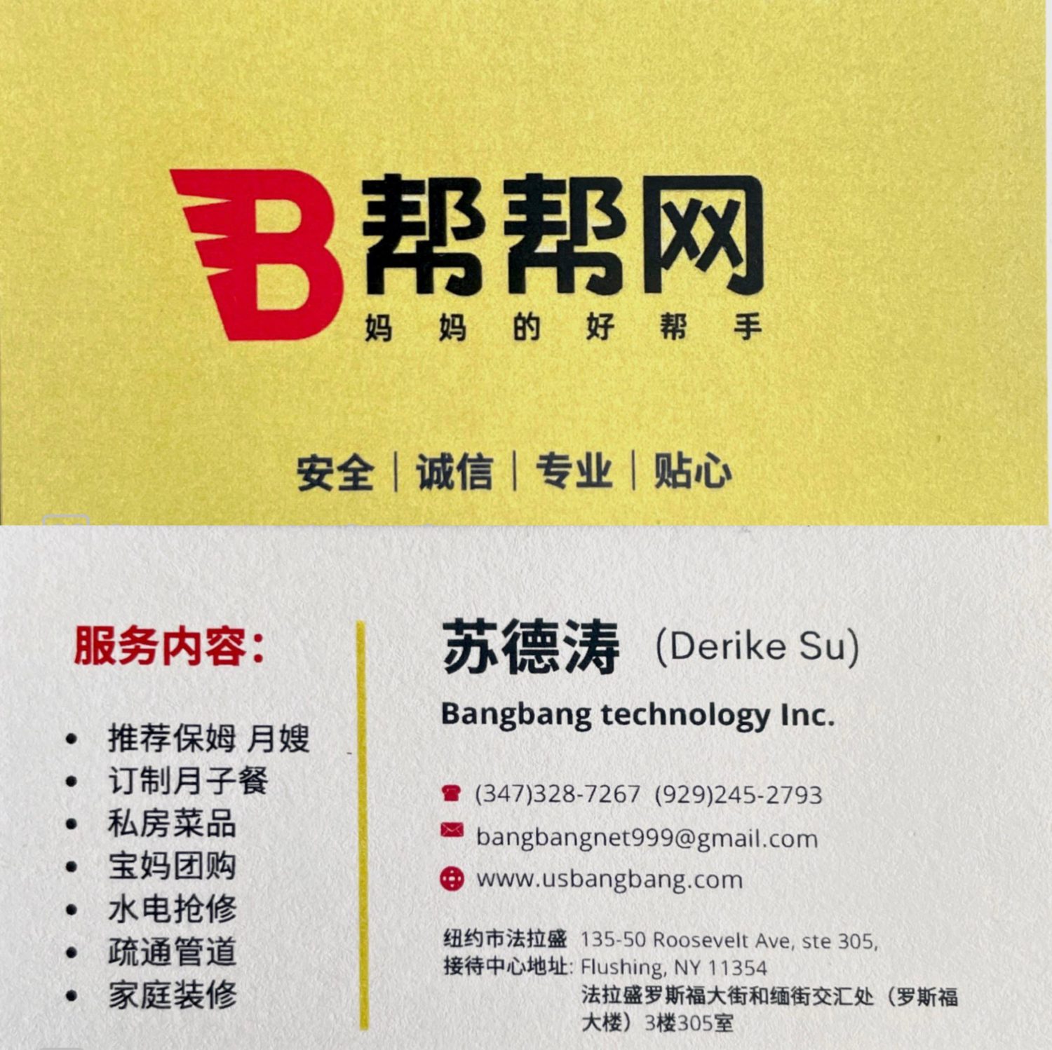 | 帮帮网招聘文员,大专以上学历,懂英文,熟练办公软件,工资:支票15美元/小时,另加奖金,奖金包括公司月度目标奖和个人业务提成奖金,上班地点:纽约法拉盛 电话:347-328-7267 或bangbangnet999@gmail.com “美国帮帮网“隶属于美国帮帮科技有限公司(英文名为:BangBang Technology Inc,域名为:usbangbang.com中文名为:美国帮帮网),是在美国纽约注册的一家专为华人妈妈提供家政服务的互联网平台,由多名在美国生活多年、富有宝贵母婴经验的宝妈们发起创建,其创业初心是:解决美国华人妈妈们的家务烦恼,让她们的生活更有品质! 服务对象:广大的华人妈妈群体,核心业务包括:为母婴、孕妈、宝妈提供优质、安全的家政服务; |