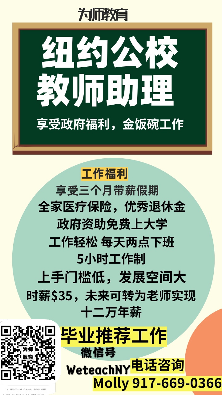 进入公立学校做中文助教的福利: