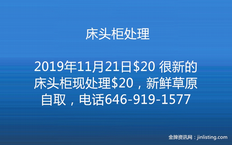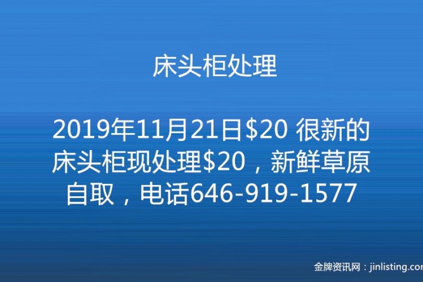 床头柜处理$20 很新的床头柜现处理$20,新鲜草原自取,电话646-919-1577