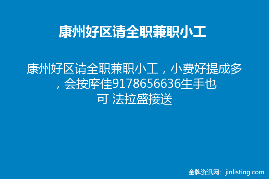 康州好区请全职兼职小工,小费好提成多,会按摩佳9178656636生手也可 法拉盛接送