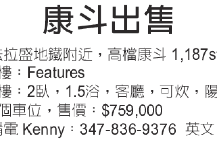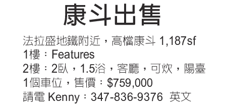 法拉盛地鐵附近,高檔康鬥:1,187sf
