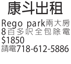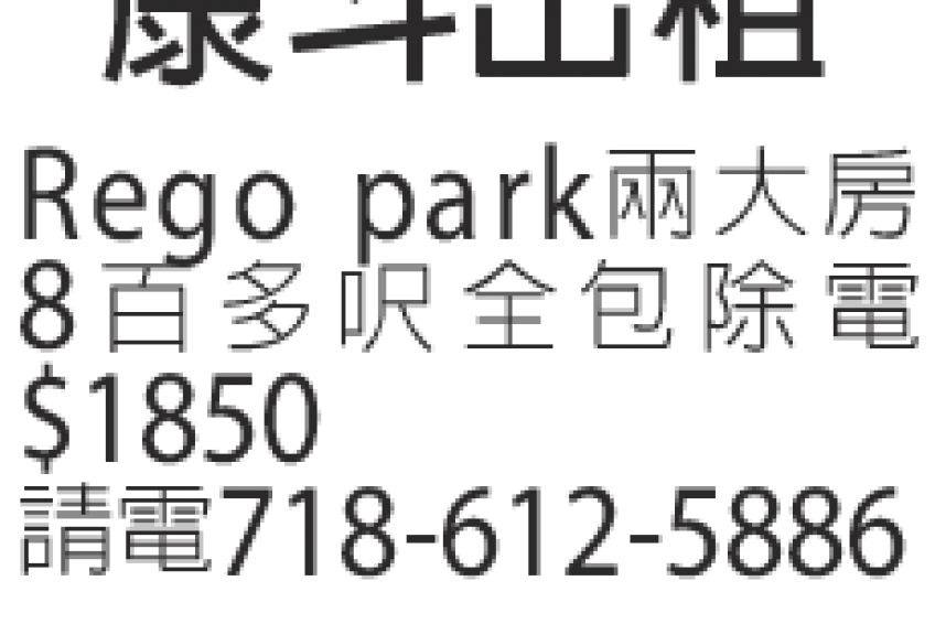 Rego park 兩大房8百多呎全包除電,$1850 有意者請電7186125886