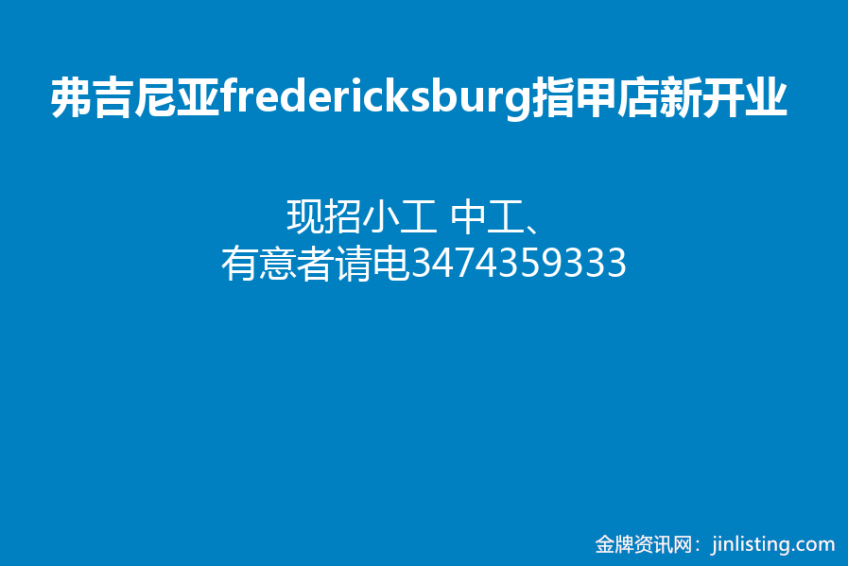弗吉尼亚Fredericksburg指甲店新开业、现招小工 中工、有意者请电3474359333