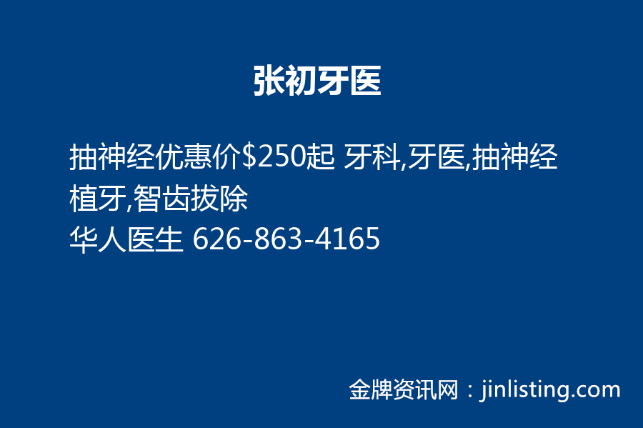 张初牙医DDS 抽神经优惠价$250起 626-863-4165