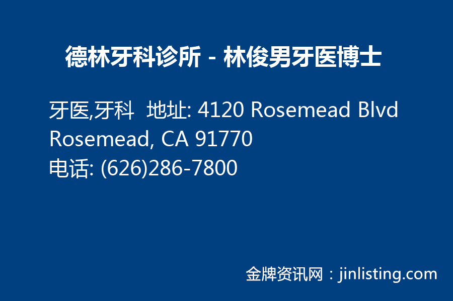 在佛罗里达大学毕业时以优异的成绩获得生化及动物学的双主修学位— 林俊男(Eddie Lin)牙医博士,Eddie Lin是一位医术高超,医德兼备的植牙专家,林医师除了专精植牙外,亦专精普通植牙医师所无法治疗的咬合关节问题和全口假牙重建。林医生现在除了担任USC 及LA County Hospital 的临床副教授外,亦为洛杉矶儿童医院的主治大夫,曾担任UCLA Venice Dental Center 的主任,同时拥有加州丶亚利桑那州丶佛州与德州的牙医执照。之后更向艰深的医学领域挑战,毕业于美国知名牙医的摇篮- 印第安那大学取得牙医博士的学位后,他往专业的领域迈进,分别在迈阿密大学及德州大学取得口腔外科与牙齿重建的专科医师文凭,并在全美首区一指的M.D. Anderson Cancer Center 受口腔癌的训练,更在UCLA进修口腔癌与颜面膺复的专业研究。林博士也欢迎大家有任何牙齿的问题可以跟他联络。