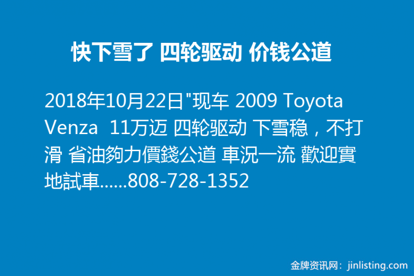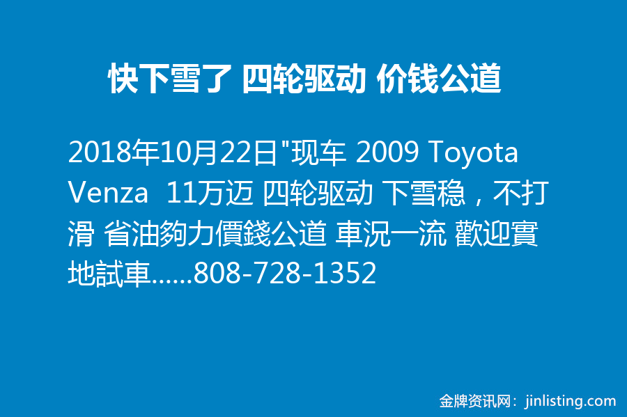快下雪了 四轮驱动 价钱公道 想知道这神车 点进看车808-728-1352