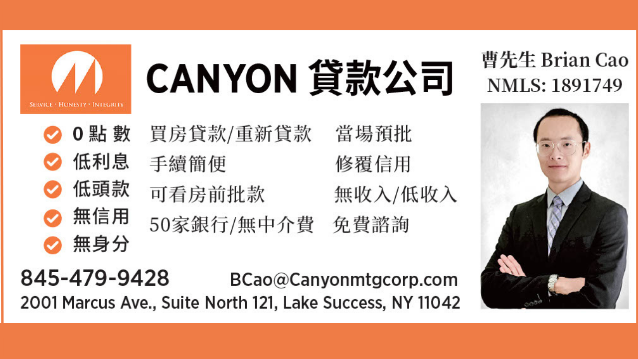 CANYON贷款公司是纽约的一家贷款公司,成立于2007年,总部位于纽约 Lake Success,在Hollis 和 Elmont另外设有两个办公室。本公司与50家银行密切合作,专业办理房屋贷款,重新贷款,快速高效,手续简便。许多有偿还能力的贷款人,只因为无法提供收入证明,报税记录,或信用记录不好,美国大银行一般都不会批准他们的贷款申请。CANYON贷款公司有不同的审核贷款的标准,可以帮贷款人修复信用记录,许多在别处无法申请到贷款的申请人,在CANYON贷款公司的帮助下都成功申请到了贷款,圆了他们的买房梦。