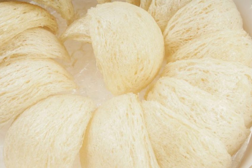 3.摸:取一小块燕窝以水浸泡,松软后取丝条拉扯,弹性差,一拉就断的为假货;用手指揉搓,没有弹力能搓成浆糊状的也是假货。