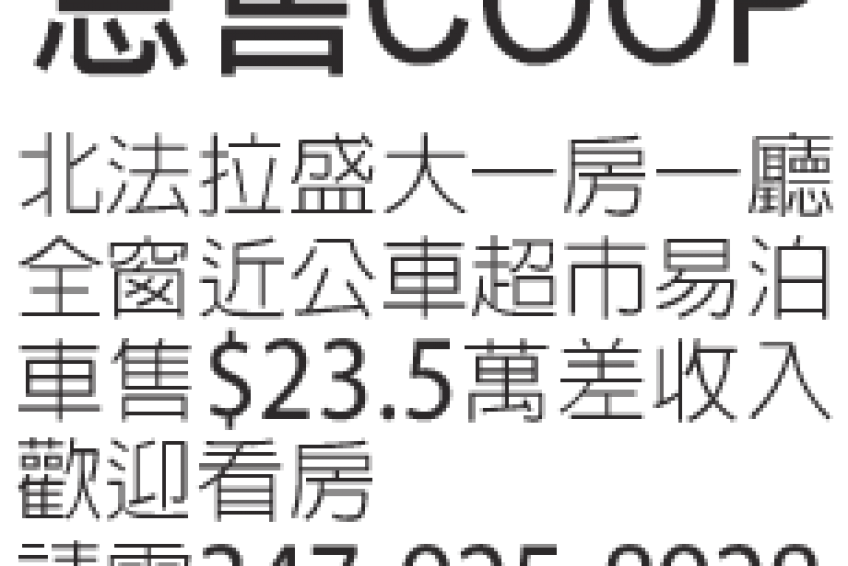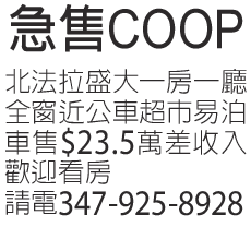 北法拉盛大一房一廳,全窗,近公車、超市,易泊車,售23.5萬差收入,歡迎看房.  3479258928
