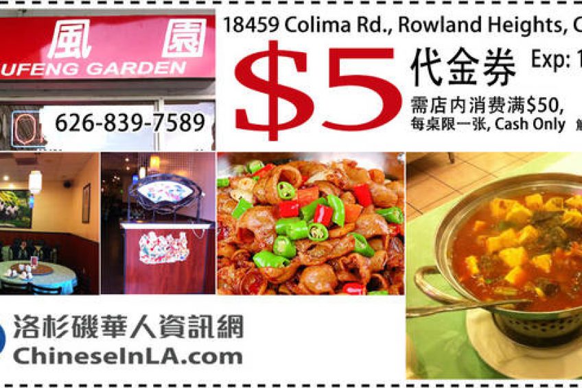 Open Hours: 11:00am ~ 9:30PM位於羅蘭岡太平洋廣場內的「成都蜀風園」川菜館,由曾獲「美國中餐烹飪大獎賽」廚藝特獎的陳師傅主理。裝璜清新雅緻,其川菜多保有正宗成都風味,老鄉們都表示口味地道!洛杉磯正宗川菜館歡迎您光臨。在順發超市旁邊的Plaza裡面