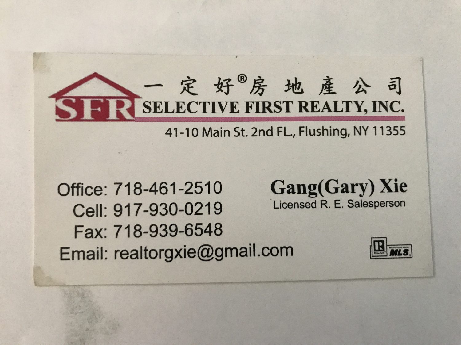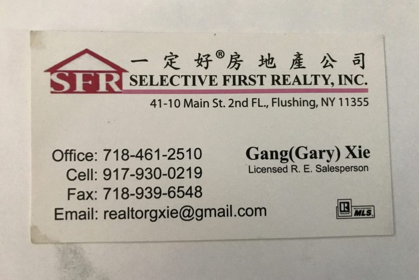 Office: 718-461-20510 Gang(Gary) Xie Cel|: 91 7-930-0219 Licensed R. E. Salesperson