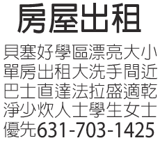 貝塞好學區漂亮大小單房出租,大洗手間,近巴士直達法拉盛,歡迎乾淨少炊人士,學生女士優先.631-703-1425