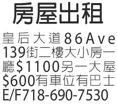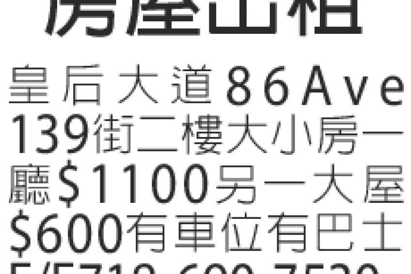 皇后大道86Ave139AST二樓大小房一廳租$1100另一大屋$600有車位Q20Q44迖緬街E-F迖曼哈噸電718-690-7530