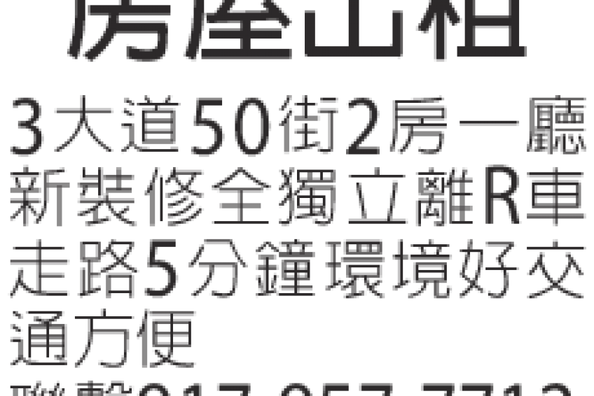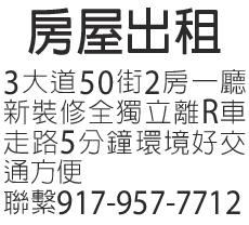 布魯克林3大道50街兩房一廳,新裝修全獨立離R車走路5分鐘,環境好交通方便.聯繫917-95