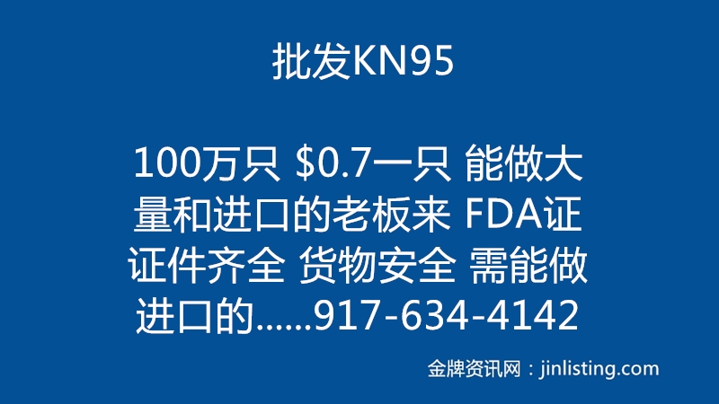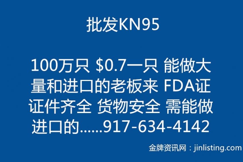 批发KN95 100万只 $0.7一只 能做大量和进口的老板来 FDA证 证件齐全 货物安全 需能做进口的老板来 价格低 有意电:917-634-4142