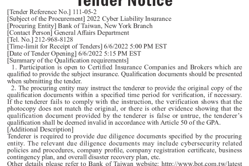【采购单位】台湾银行纽约分行