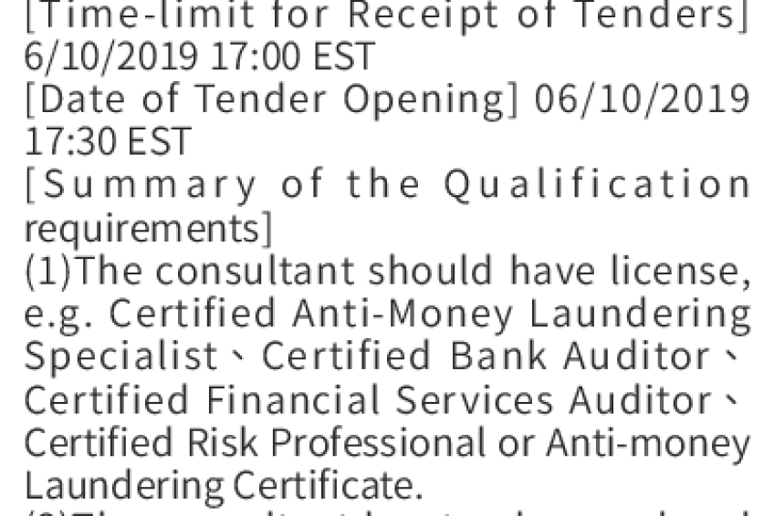 [ 编号] 212-968-8128 [收到投标书的时限] 6/10/2019 美国东部时间17:00