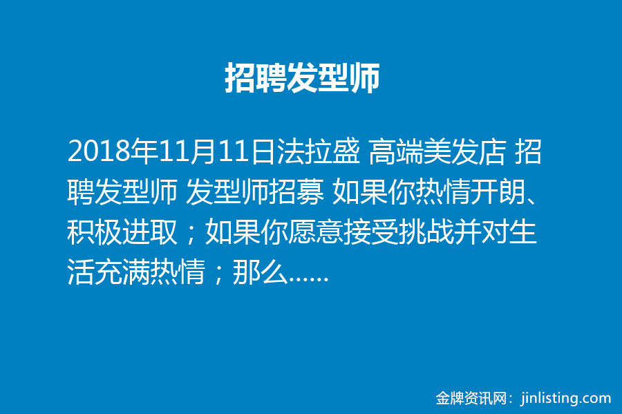 法拉盛 高端美发店 招聘发型师 发型师招募 如果你热情开朗、积极进取;如果你愿意接受挑战并对生活充满热情;那么,你正是我们寻找的人!只要你愿意做,有热情肯奋斗,我们愿意给你机会。现在HAIIER正在寻找你~ 任职要求: 男女不限,20-40岁之间,国语以及基本英文流利; 熟练当代时尚美发技术,设计理念时尚而有品位 2年以上发型师经验; 热爱时尚行业,个人形象好、气质佳,工作热情、积极主动; 沟通能力好,能够为顾客提供优质服务。有良好的团队合作精神、具有亲和力、服务意识强。 工资待遇优,提成高小费好~具体面议 电话:718-888-9310 地址:43-08 Main St. Flushing NY 联系微信:zaofangstudio 店铺网页:www.haiier.com Ins:haiier_hair