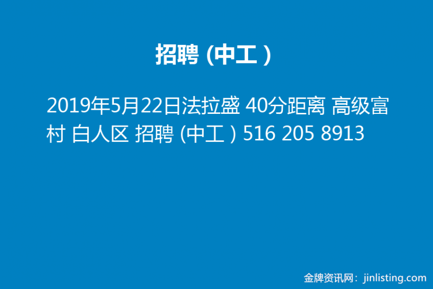 法拉盛 40分距离 高级富村 白人区 招聘 (中工 ) 516 205 8913