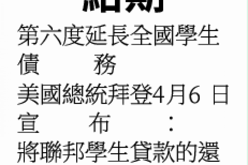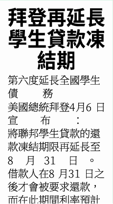 ● 聯儲的統計顯示,共計2,000 億美元的學生貸款在這期間得以暫緩還款。