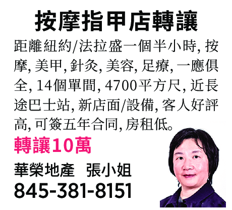 按摩, 美甲,針灸,美容,足療, 一應俱全,14 個單間,4700 平方尺,近長途巴士站,新店面新設備,客人好評高,可簽五年合同,房租低。