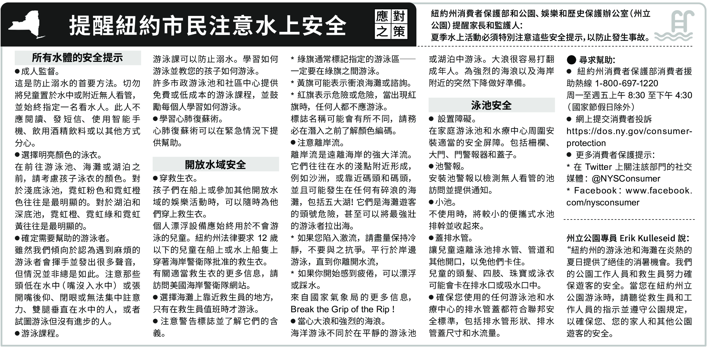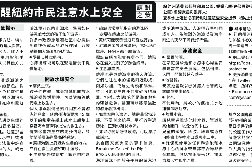 ●  紐約州消費者保護部消費者援助熱線 1-800-697-1220