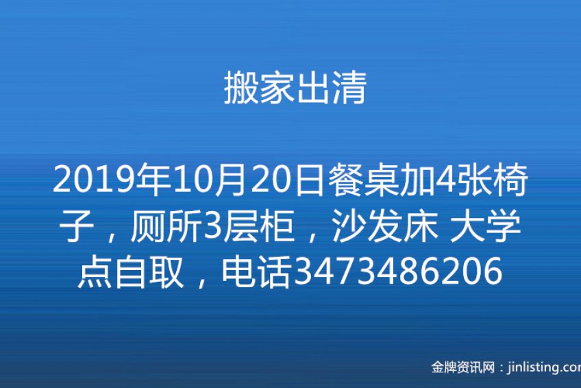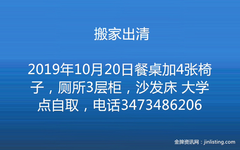 搬家出清,餐桌加4张椅子,厕所3层柜,沙发床 大学点自取,电话3473486206