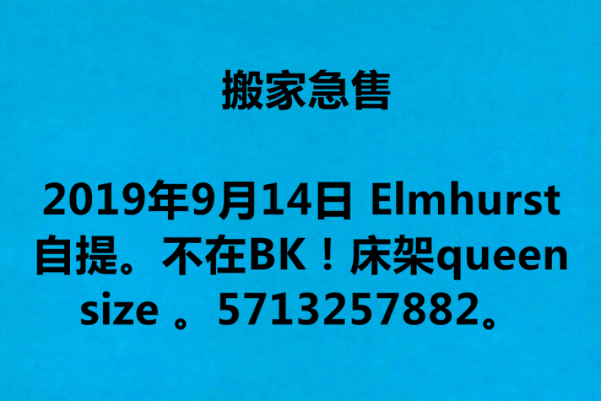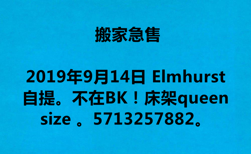 搬家急售 Elmhurst 自提。不在BK!!5713257882。床架queen size 。