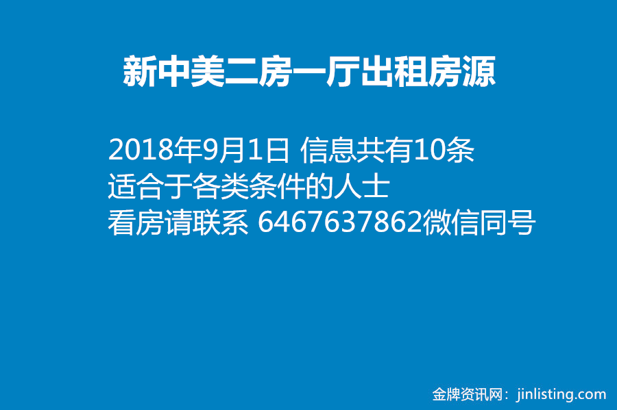 新中美 二房一厅出租房源          6467637862