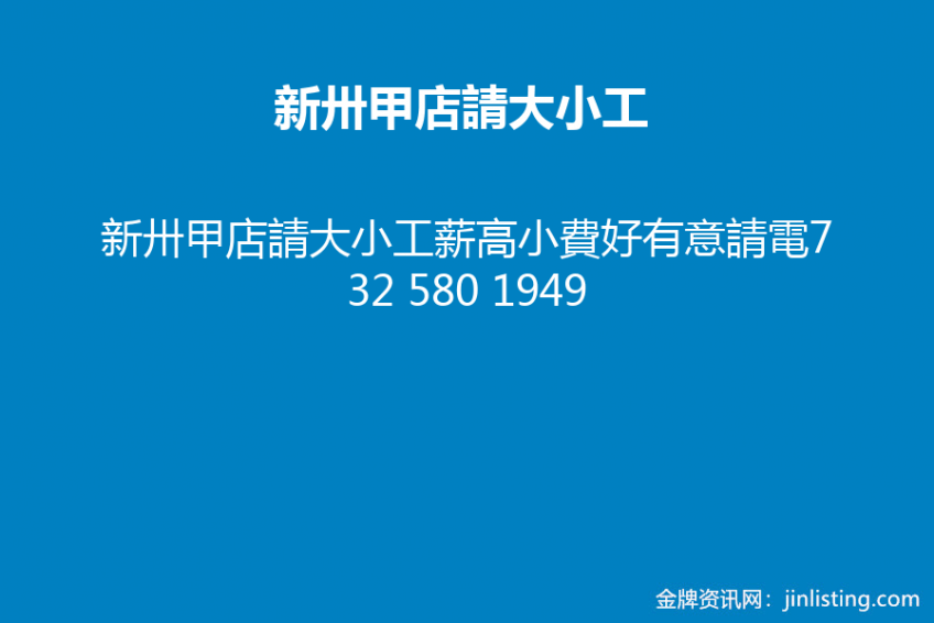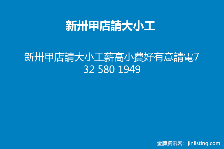 新卅甲店請大小工薪高小費好有意請電732 580 1949