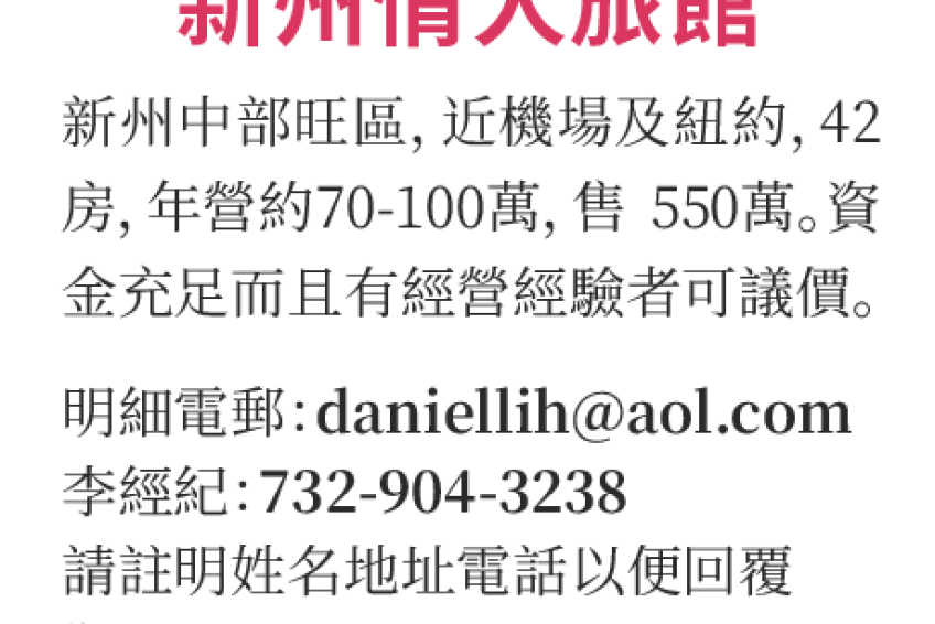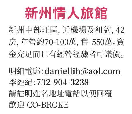 新卅中部旺区,近机场及纽约,42房年营约70-100万,售550万,资金充足或有经营经验者可议价