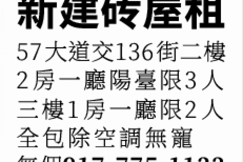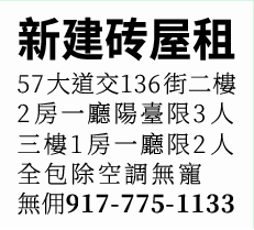 電話。917-775-11332房1廳/1房1廳出租。(無中介)