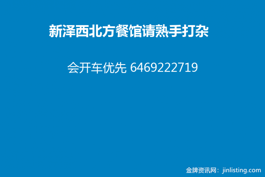 新泽西北方餐馆请熟手打杂 ,会开车优先 6469222719