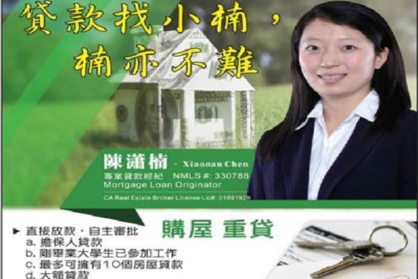 陈潇楠(Xiaonan Chen),新美贷款银行专业贷款经纪,大家通常称她为小楠,毕业于美国犹他大学金融硕士专业。 具有5年多贷款审批经验,成功办理过上千个CASES。专精自住屋,度假屋,投资屋,银行屋和短售屋的贷款。