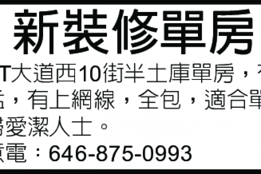 新裝修單房 646-875-0993