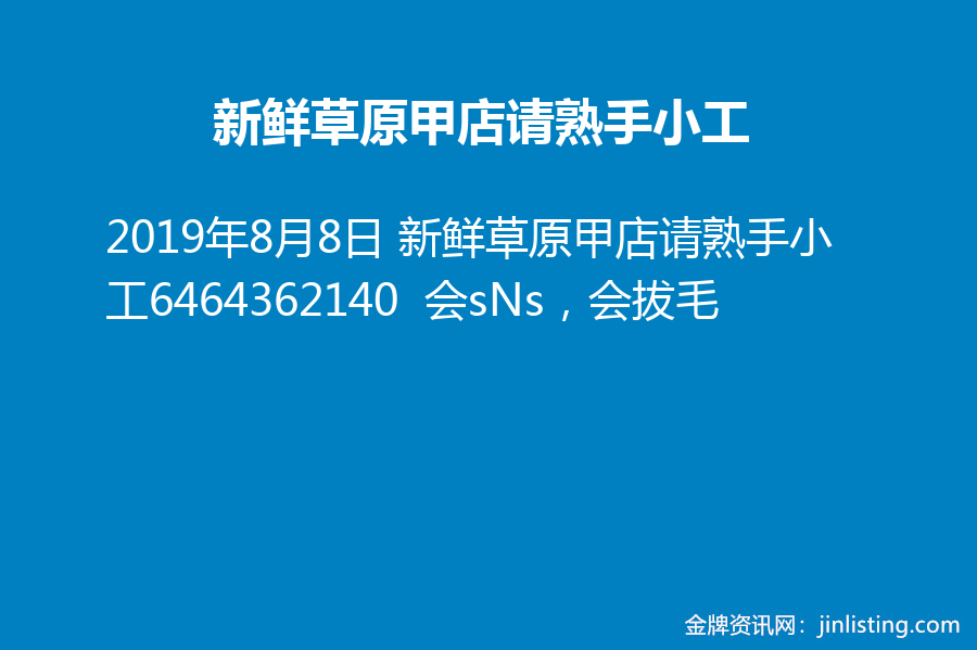 新鲜草原甲店请熟手小工6464362140 会sNs,会拔毛