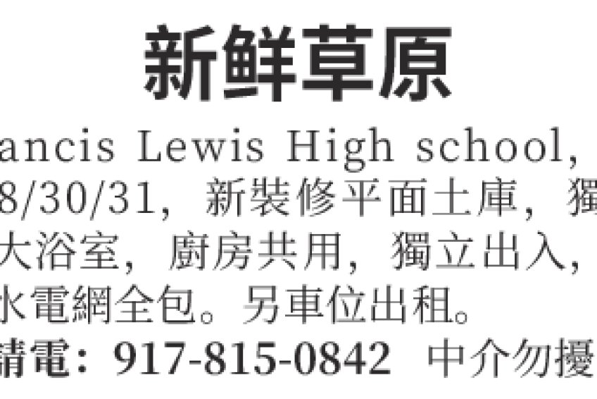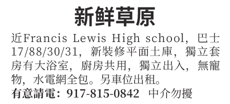 近Francis Lewis High school,巴士17/88/30/31.新装修平面土库,